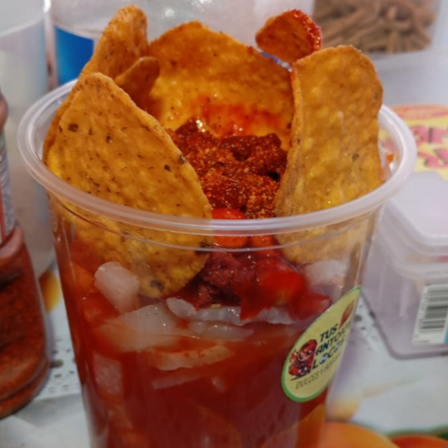 cueritos ,cacahuate ,chaca chaca(dulce de tamarindo) ,clamato(el original) ,salsa(botanera) ,chamoy (mega),limon y tajin