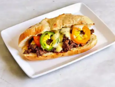 Carne Sazonada, Chile Morron Y Queso Gratinado