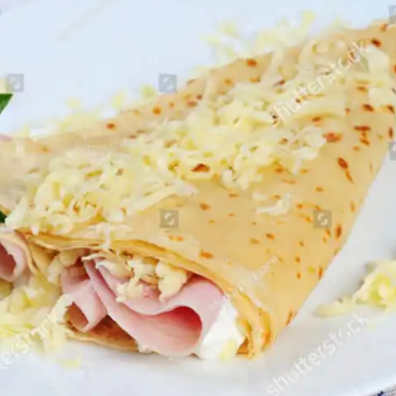 Crepa con pechuga de pavo, queso provolone y aderezo chipotle.