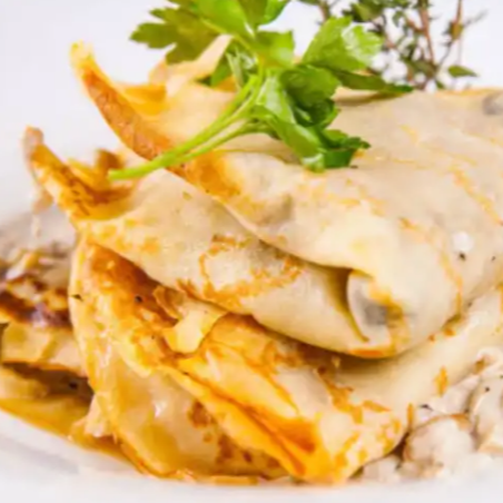 Crepa con pechuga de pollo, queso provolone y aderezo chipotle.