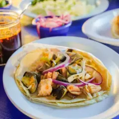 EXQUISITA QUESADILLA CON PESCADO COCIDO AL MOMENTO ACOMPAÑADO DE REPOLLO Y MEXICANA