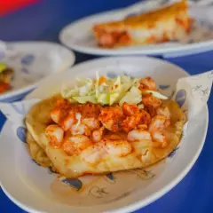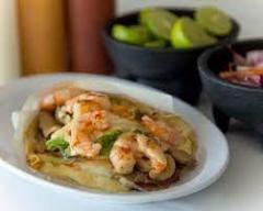 EXQUISITA QUESADILLA CON CAMARÓN COCIDO AL MOMENTO ACOMPAÑADO DE REPOLLO Y MEXICANA
