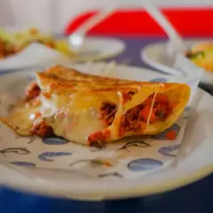 DELICIOSA QUESADILLA CON UNA PORCIÓN DE CARNE NEW YORK ACOMPAÑADO DE REPOLLO Y ADEREZO DE LA CASA