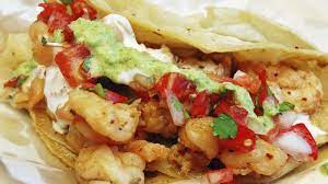 TORTILLA DE MAIZ, EL PRODUCTO DE CAMARON, ACOMPAÑADO CON REPOLLO & SALSA MEXICANA