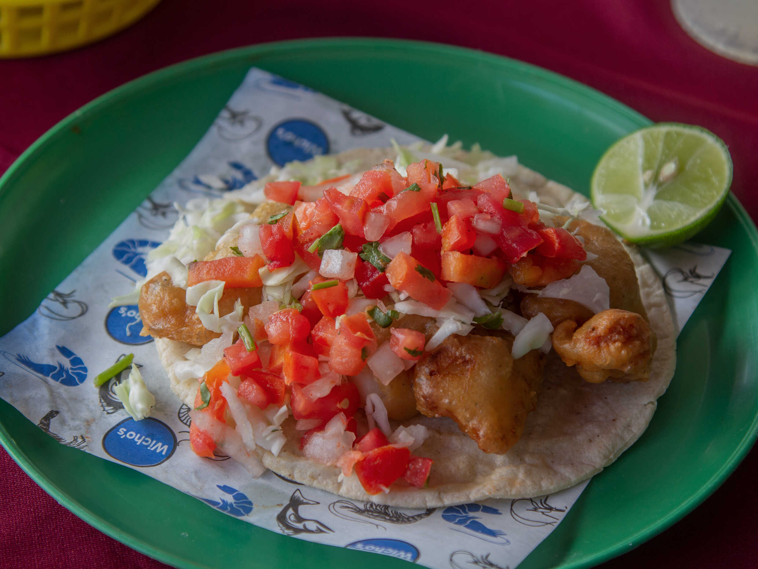 AHORRO DE $56 PESOS!!! 3 tacos de pescado capeado + 1 agua de jamaica