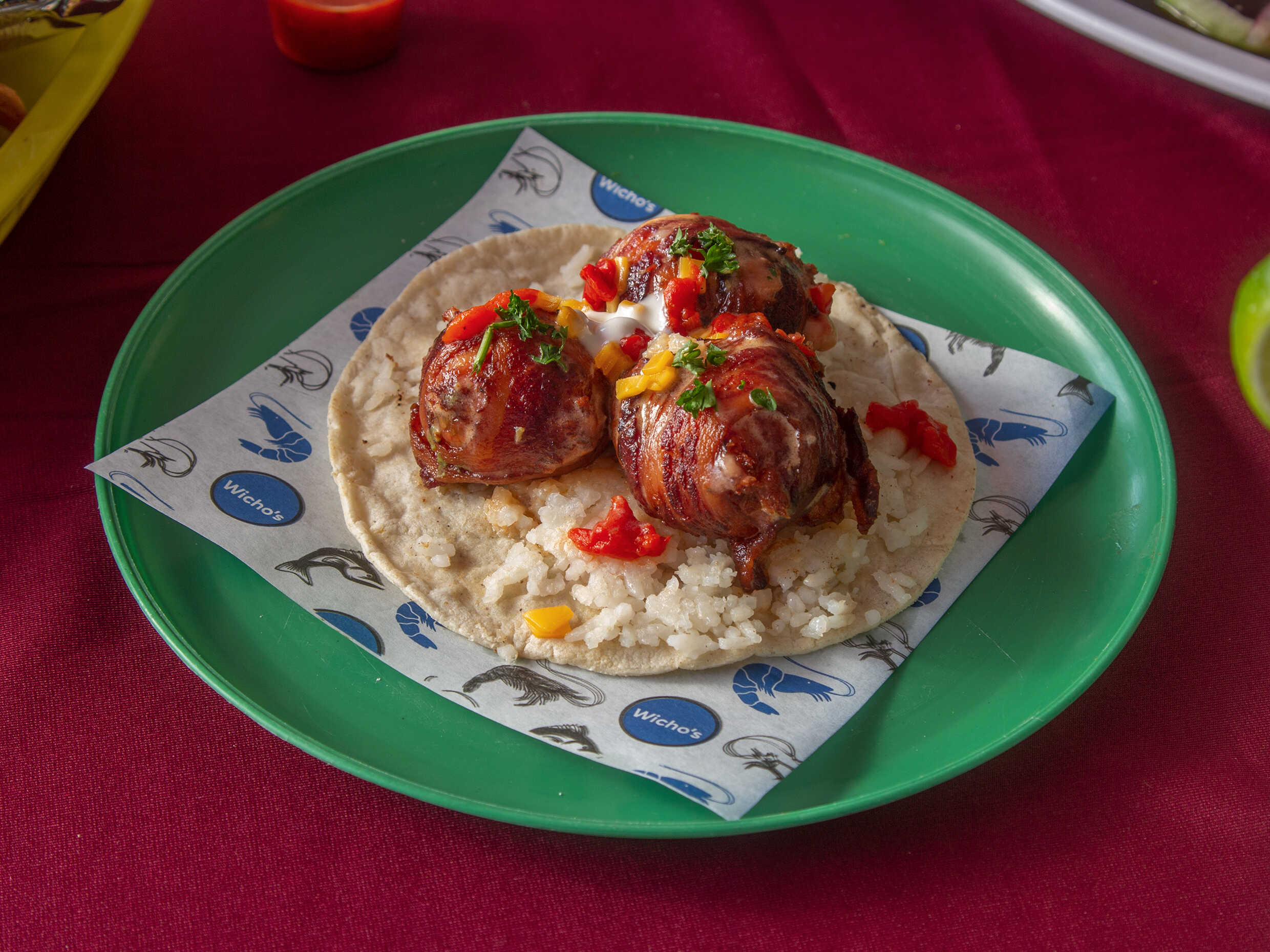 EL ESPECIAL DE LA CASA MARLIN AHUMADO EN PENCAS DE MAGUEY SAZONADO CON ESPECIES DE LA CASA DORADITO CON QUESO MONTERREY YACK