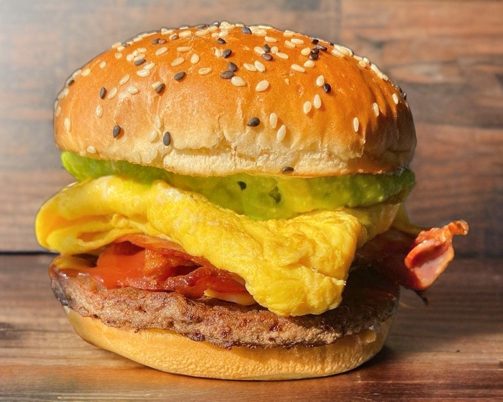 Carne de res, huevo doble queso Americano, queso mozarella ,tocino y guacamole . INCLUYE :papas