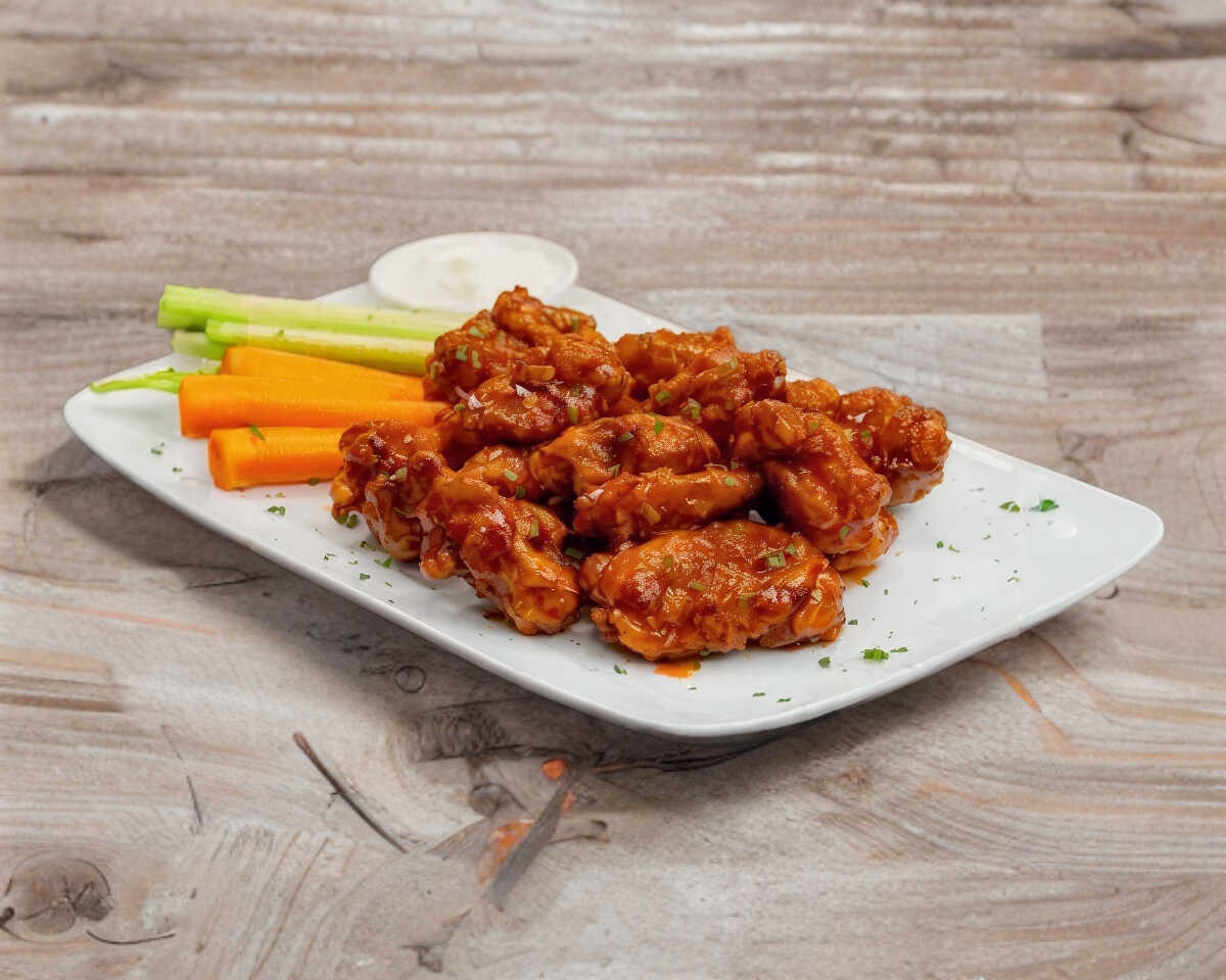 1 kg de boneless bañadas en salsa de su elección. Incluye vegetales y aderezo.