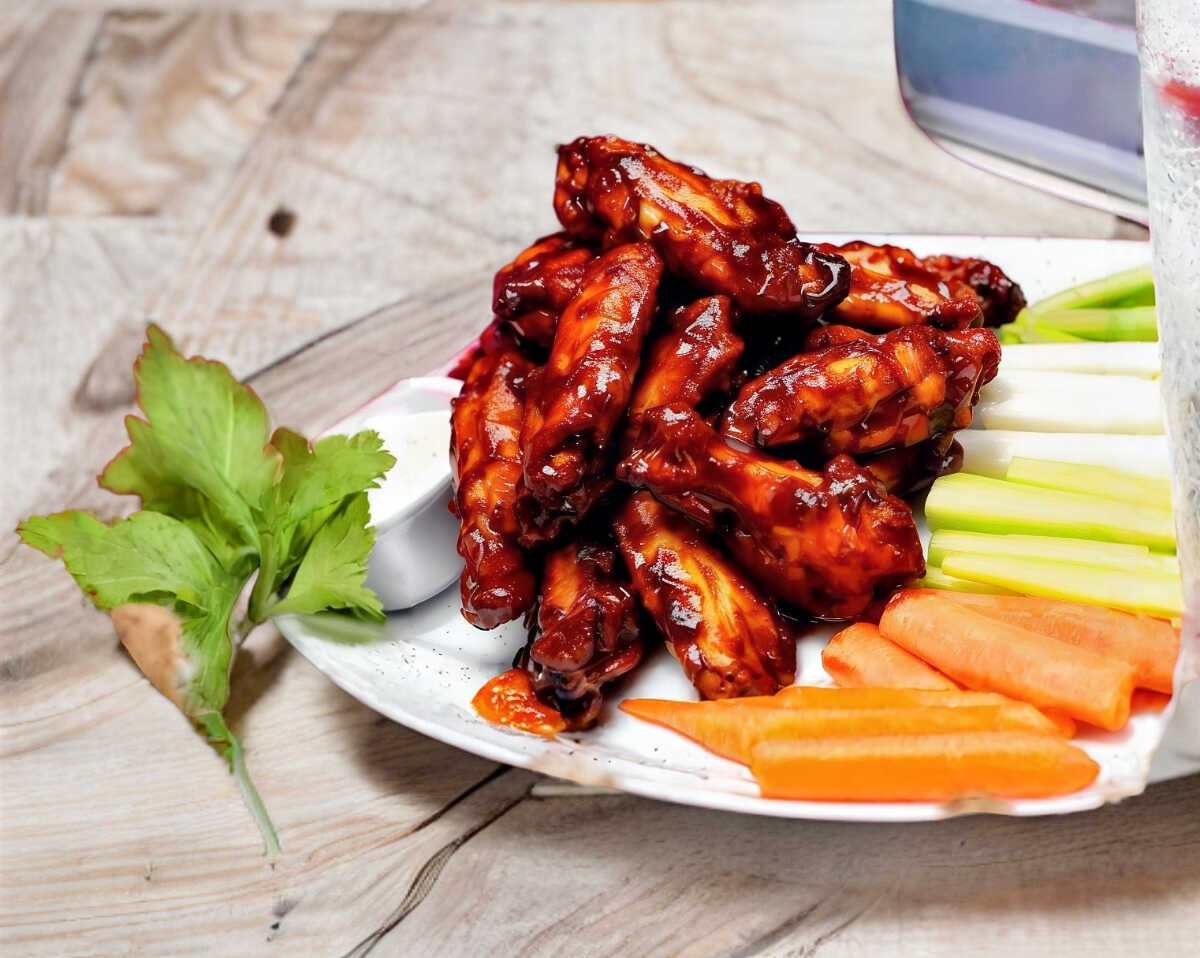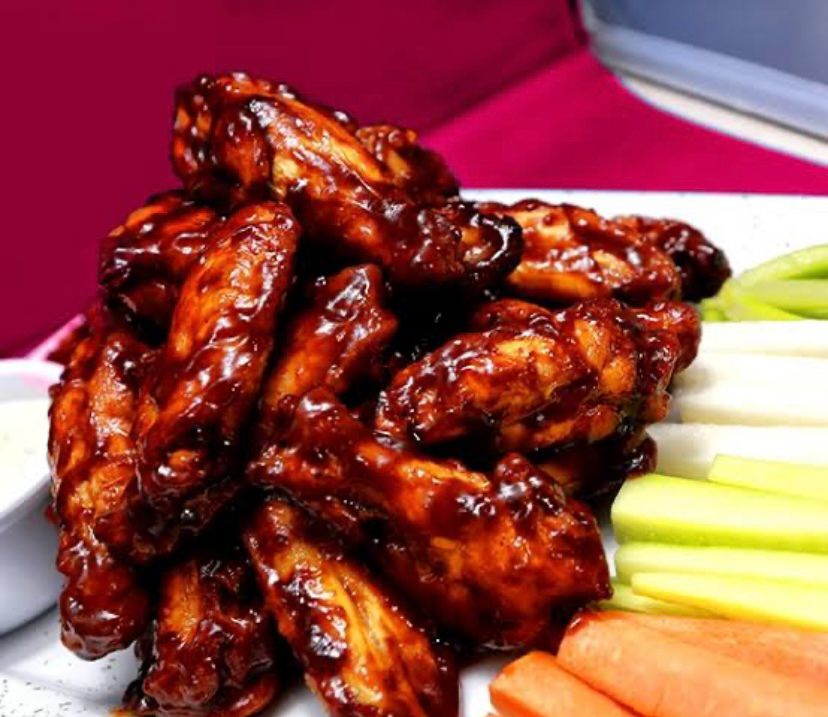 1 kg de alitas bañadas en salsa de tu elección. Incluye vegetales y aderezo