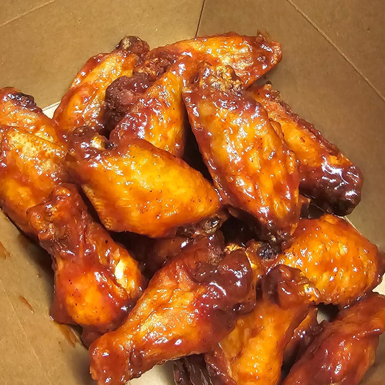 Alitas de pollo,Consomé de Pollo ,ajo molidos, fécula de maíz,aceite de oliva,mantequilla, agua,+ Costillas de cerdo,Taza de azúcar rubia,Sazonador para Carne y Pollo vinagre de manzana, Sal de mar, Paprika, Sala Ají Jalapeño, Incluye papas y una soda de lata