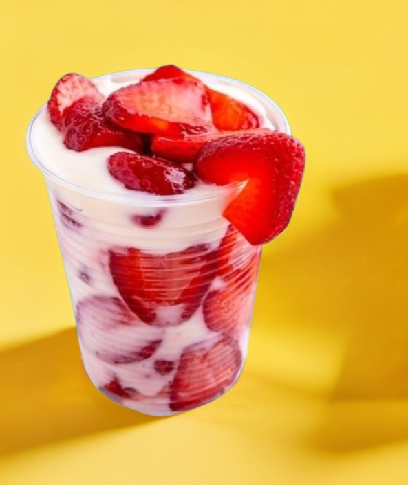 Fresas con crema sencillas de 12 Oz incluye Toppings y Crema Batida mas chetos flaming de 58gr