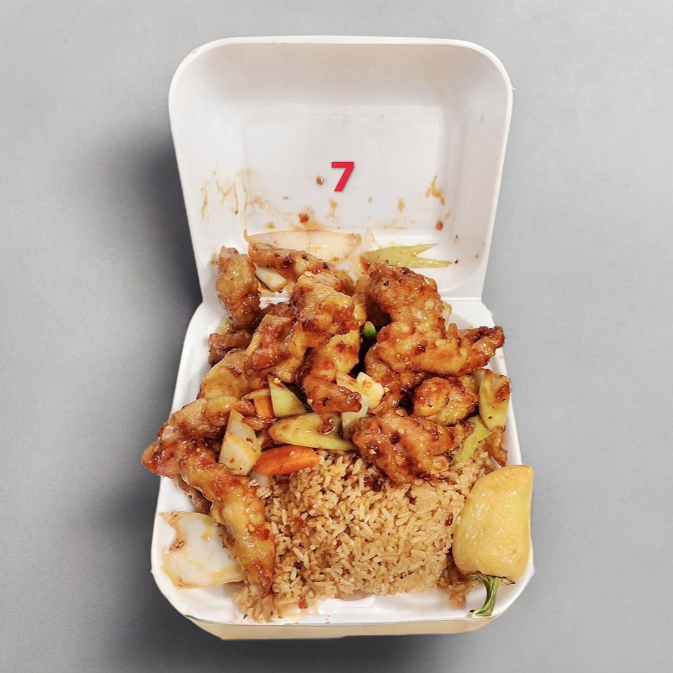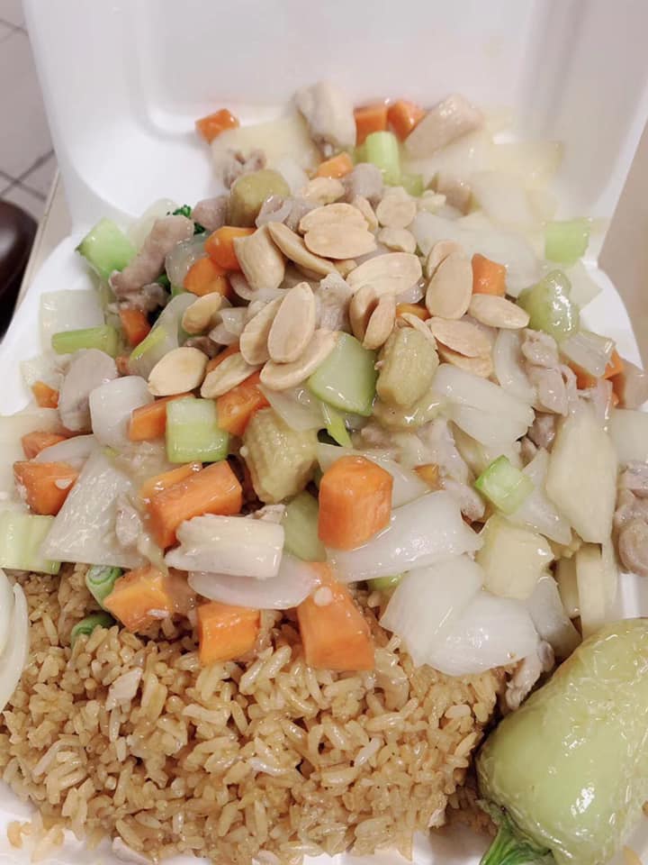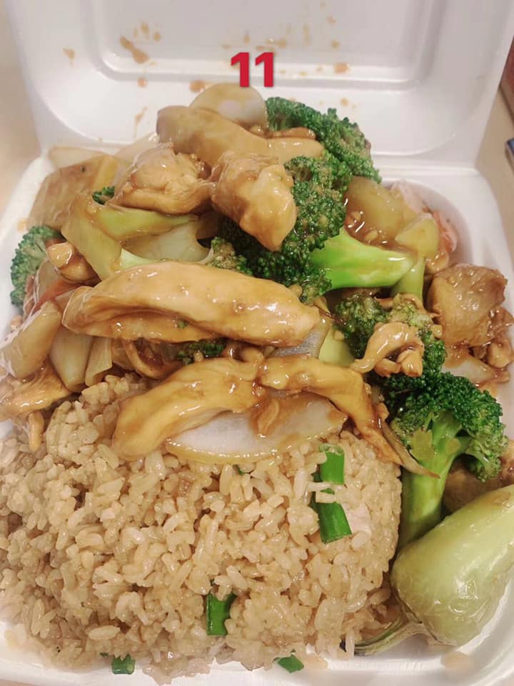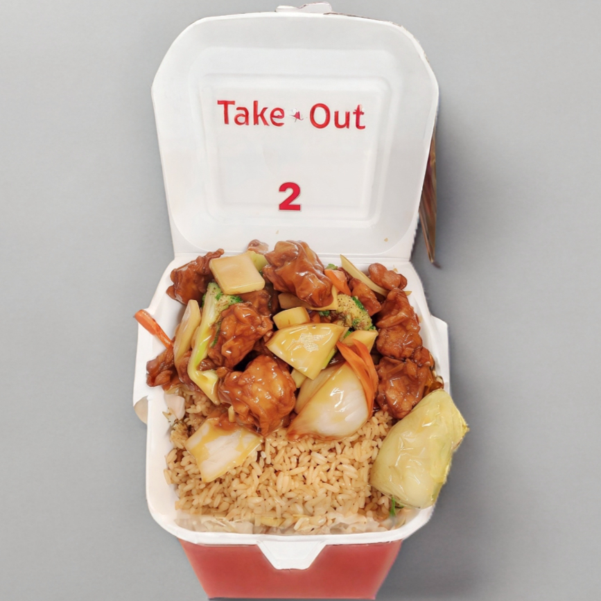 Pollo mongolia, arroz con pollo, chile asado.