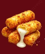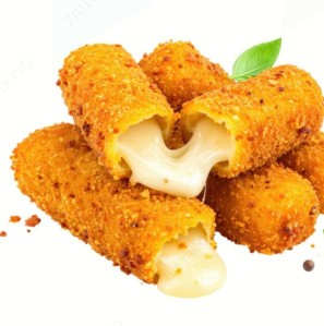 150 g De palitos de queso mozzarella empanizados y fundidos.