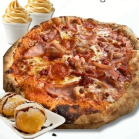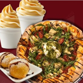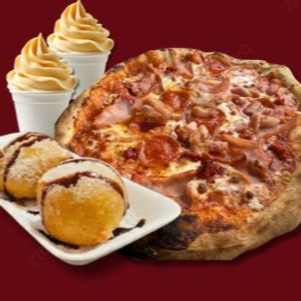 1 Pizza gourmet, 2 helados suaves, 2 fried oreos.