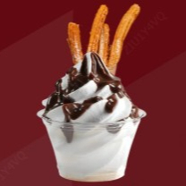 1 Helado doble, cubierto en salsa de chocolate con 4 churros fritos.