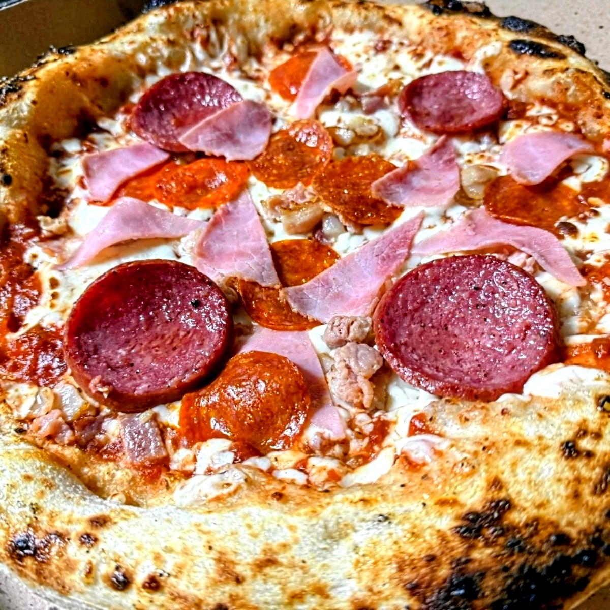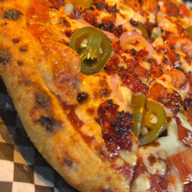 Sabrosa combinación de jamón tradicional y chorizo especiado sobre masa artesanal.