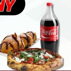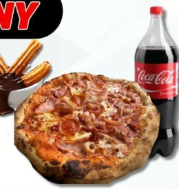 1 Pizza clasica, 2 helados suaves.