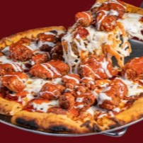 Pizza artesanal cubierta con trozos de pollo boneless bañados en salsa bbq y aderezo especial.