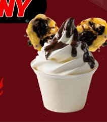 1 Helado doble, cubierto en salsa de chocolate con doble fried oreo.