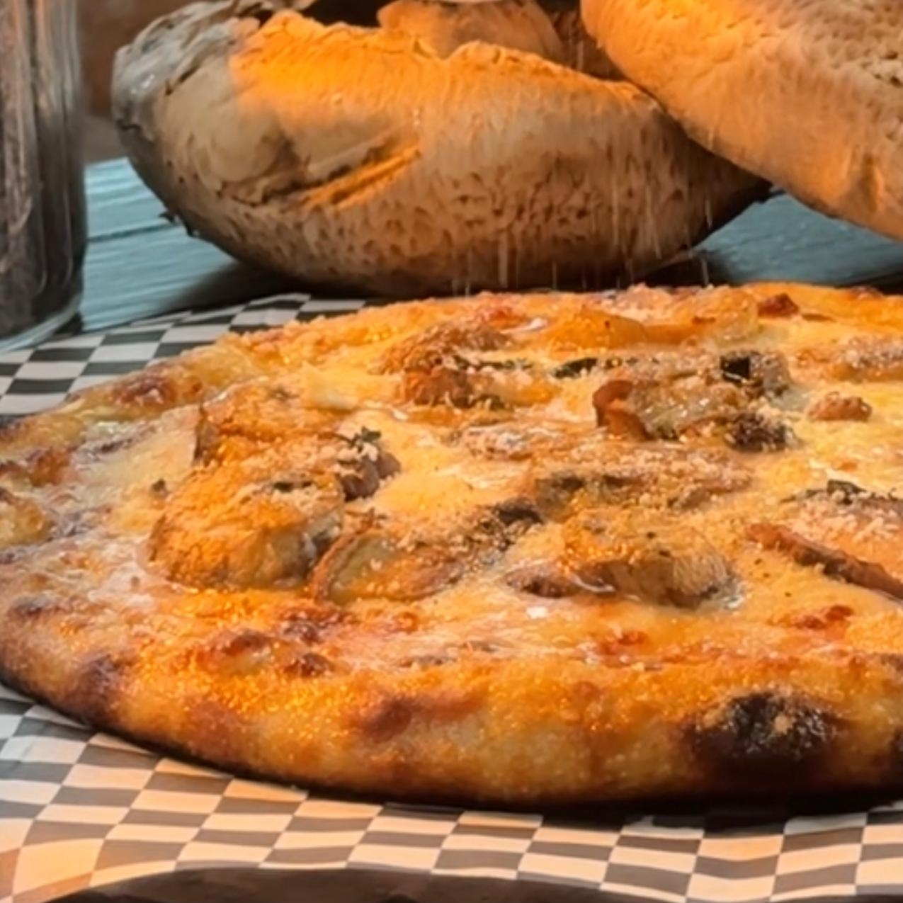 Experiencia gourmet con hongos portobello, champiñones, queso azul, queso parmesano y un toque aromático de aceite de trufa.