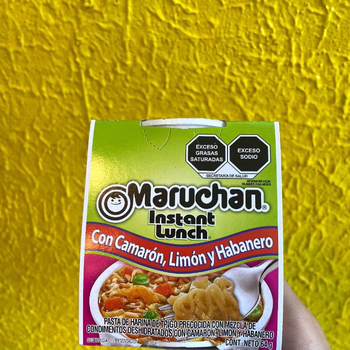Sopa maruchan, con esquite, mayonesa, queso, limón y picante