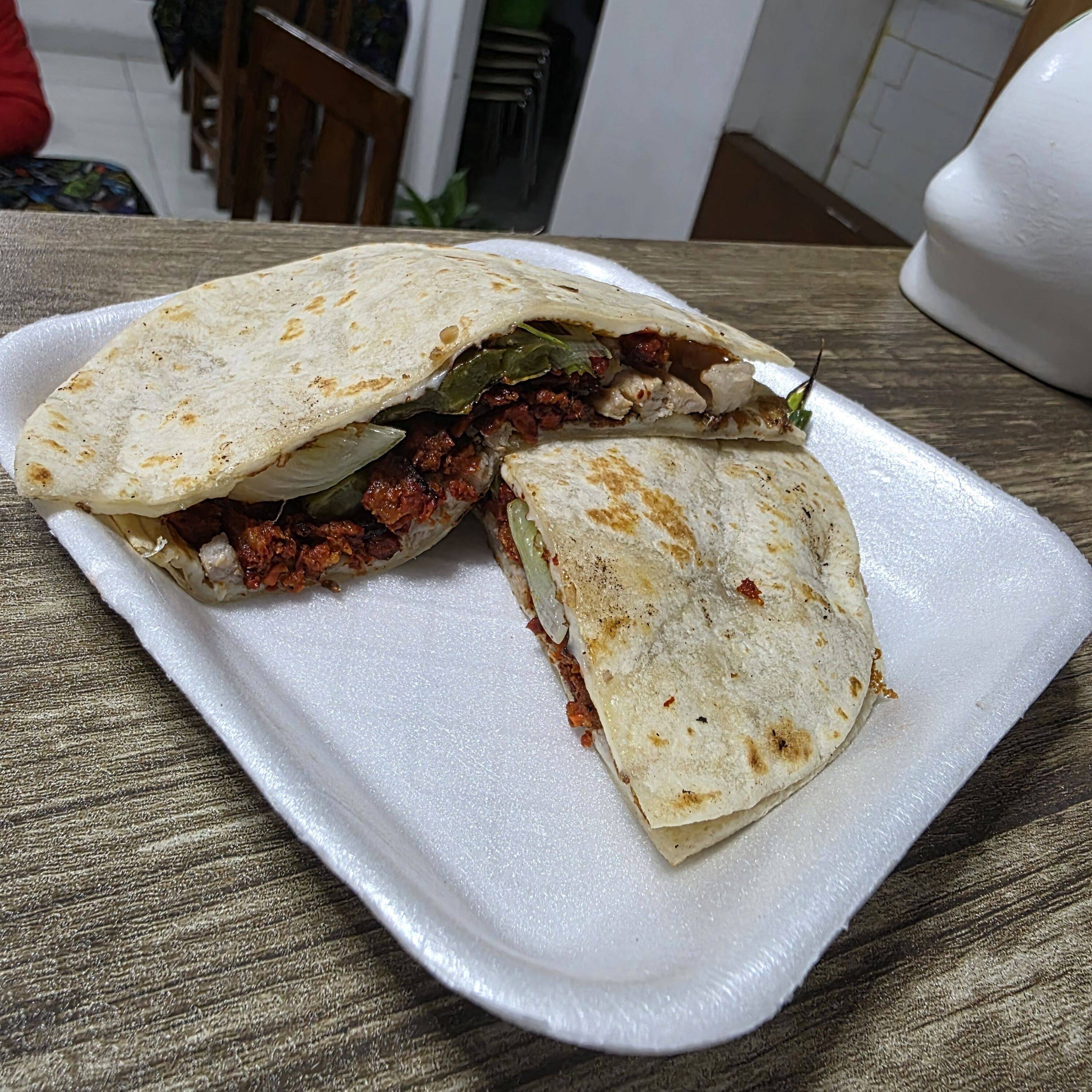 Dos tortillas de harina con queso derretido y tu selección de carne premium (chorizo, arrachera o campechano). Simplemente irresistible.