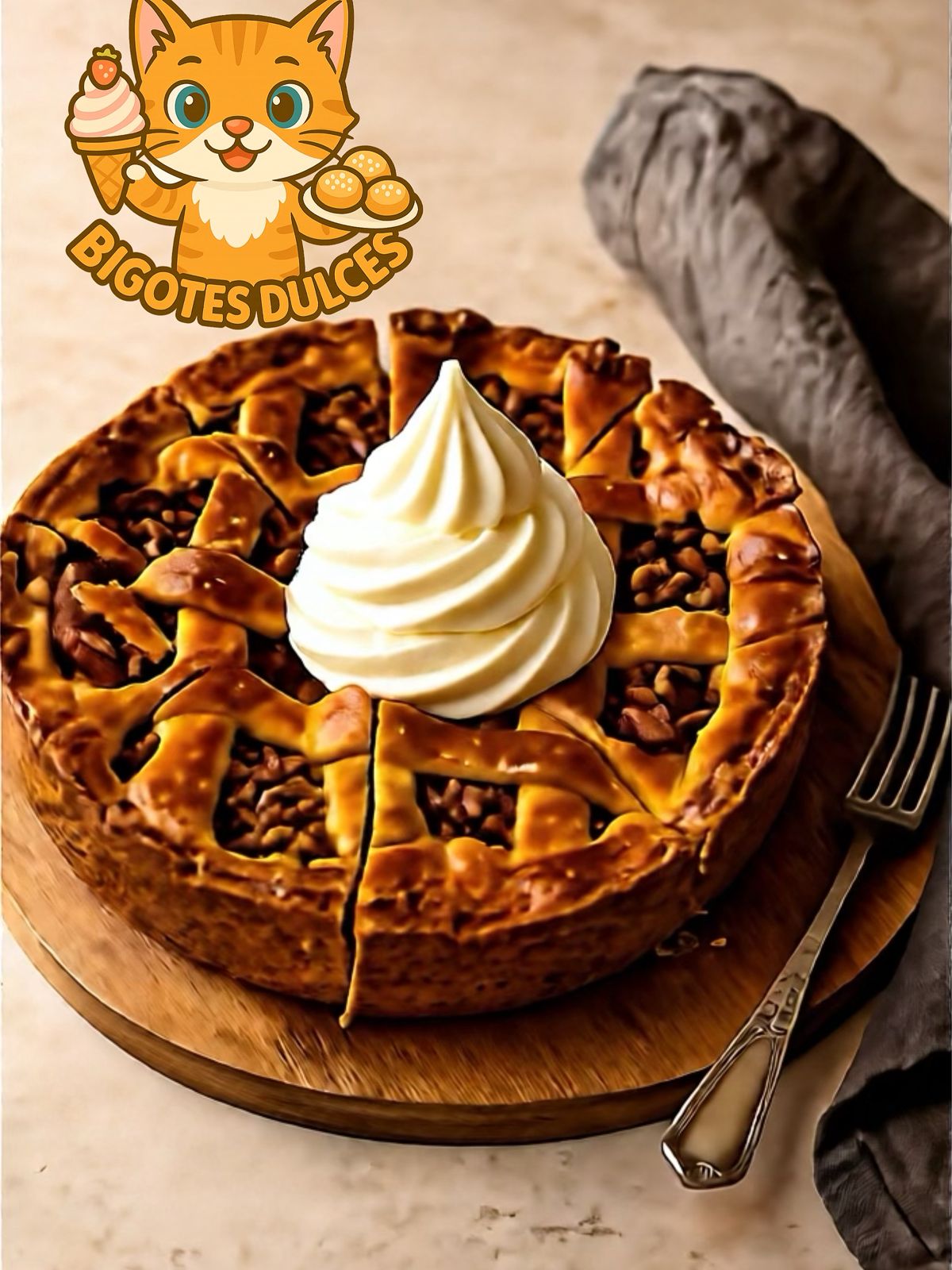 Rebanada de pay estilo holándes de manzana, pasas y nuez.