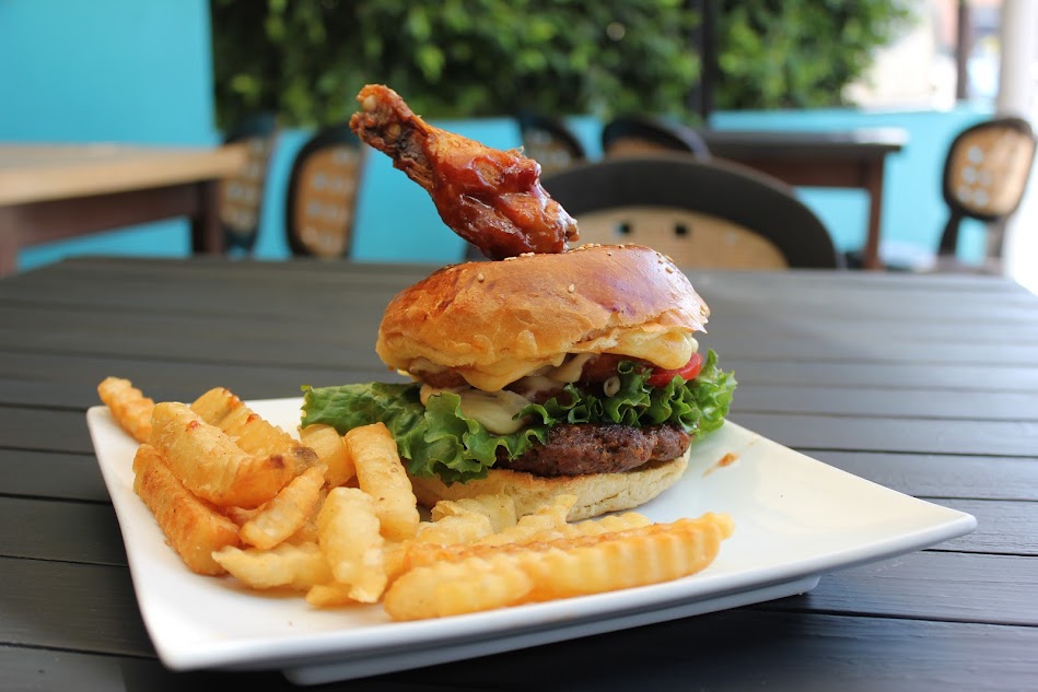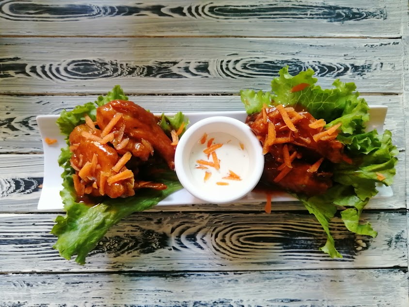 10 Alitas, 10 boneless, papas a la francesa y dos bebidas.