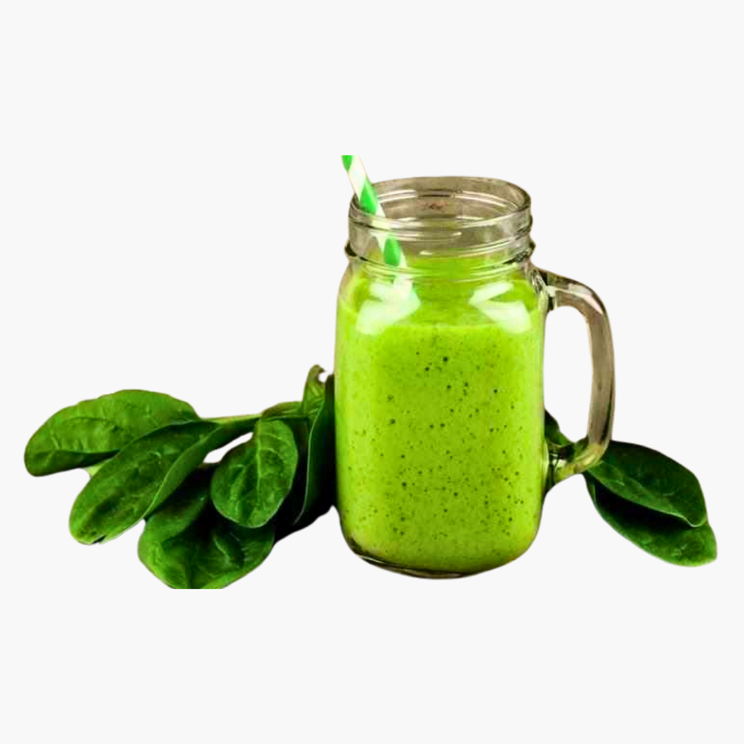 Mezcla de jugo de manzana, espinaca, apio, limón y jengibre. Desintoxica tu cuerpo.