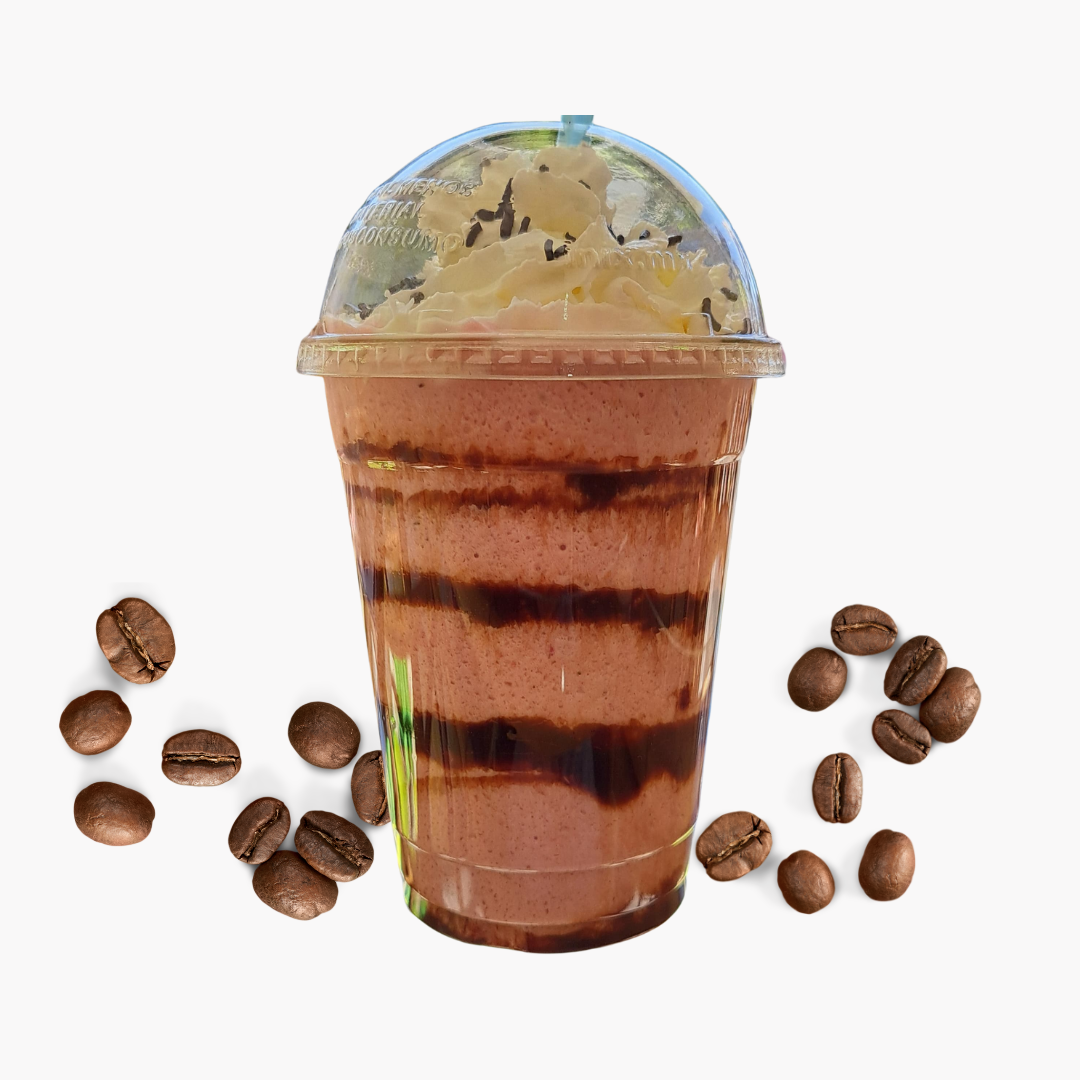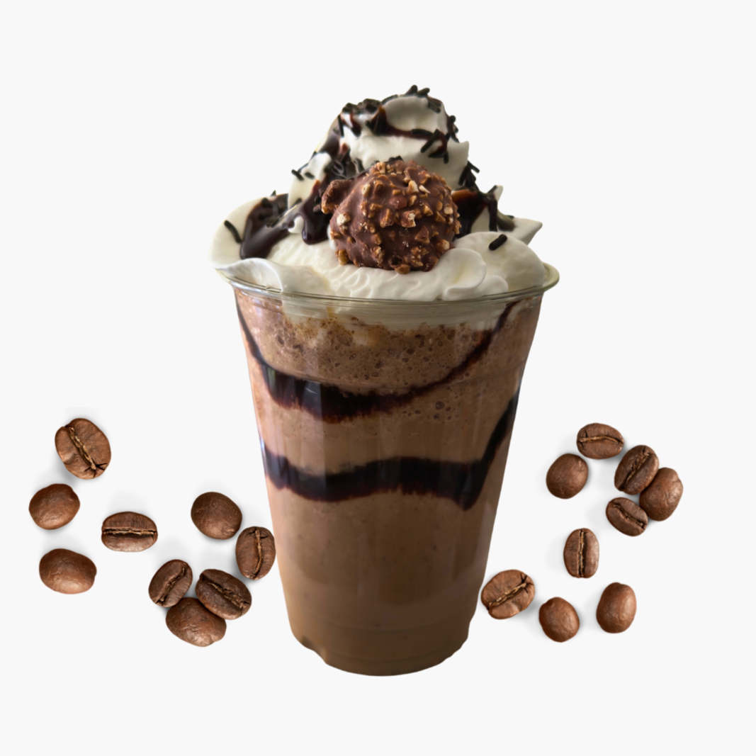 Frapuchino con café espresso, base, chocolates Ferrero, sabor intenso y cuerpo ligero.