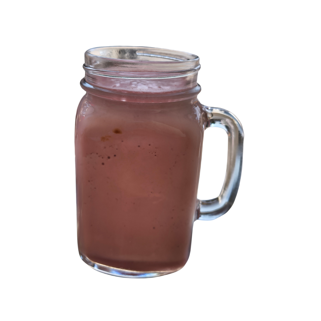 Batido de fresas naturales con chocolate, leche y hielos.