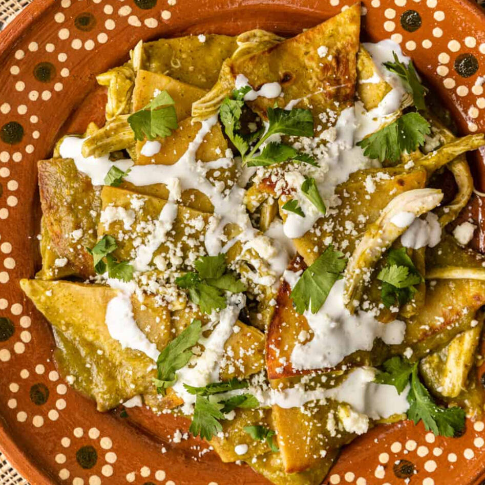 De chilaquiles verdes o rojos, con crema, queso, cebolla.