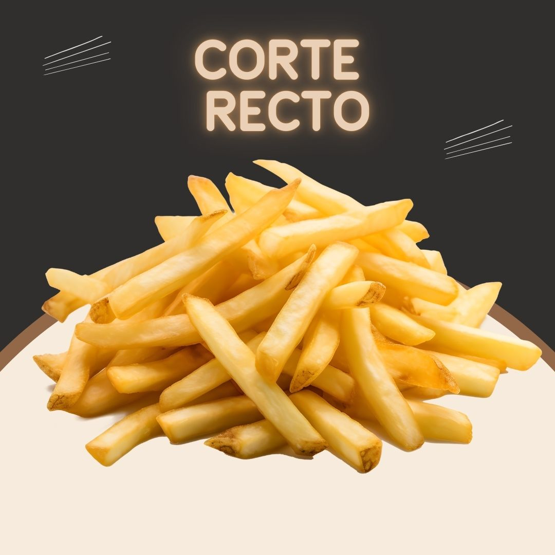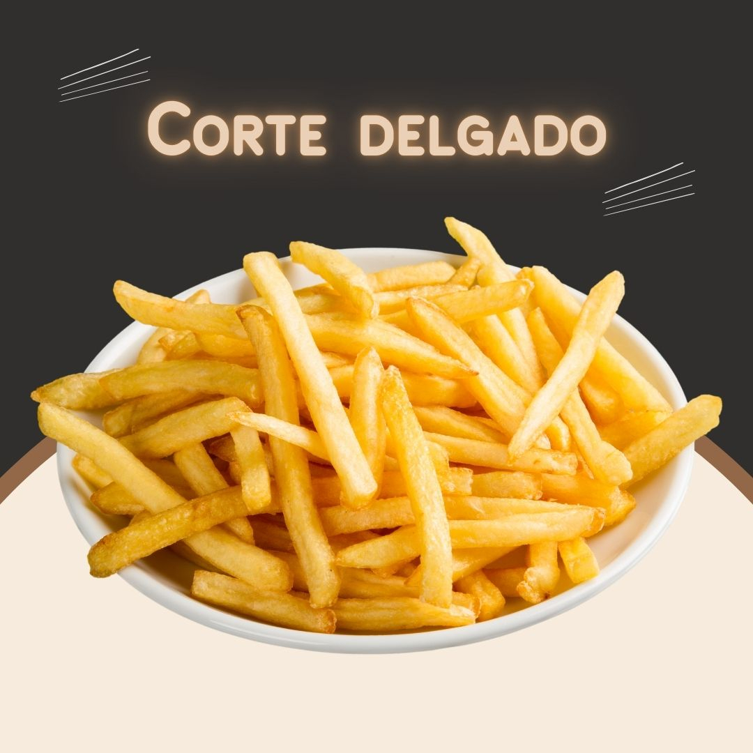 300 gr (peso en crudo) de papas a la francesa corte ondulado. Acompañadas de catsup, valentina, mostaza y mayonesa.