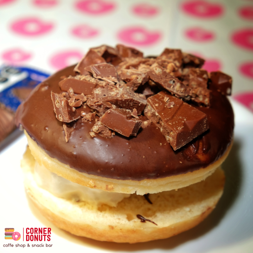 Dona / Cobertura de chocolate / Trocitos de cacahuate/ Chocolate Snicker´s ®