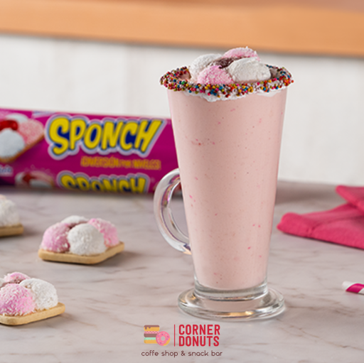 Helado de fresa / Bombones / Crema batida / Galleta Sponch® / Granillo de colores