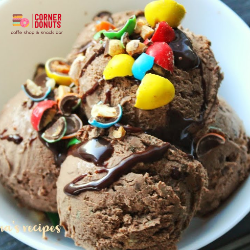 3 bolas de helado de chocolate / lunetas M&M´s® / Hershey´s líquido®
