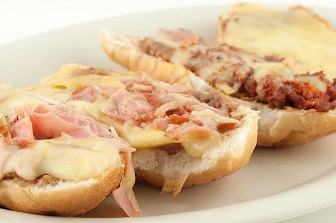 Molletes (3pz) Mantequilla, frijoles, queso manchego y pico de gallo