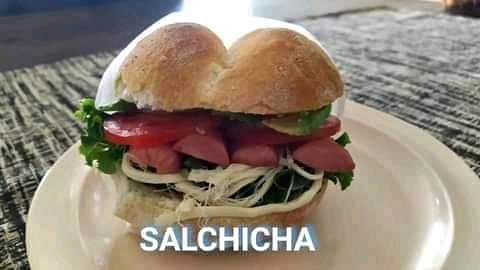 Jitomate, rajas, cebolla, frijoles, mayonesa, aguacate y salchicha