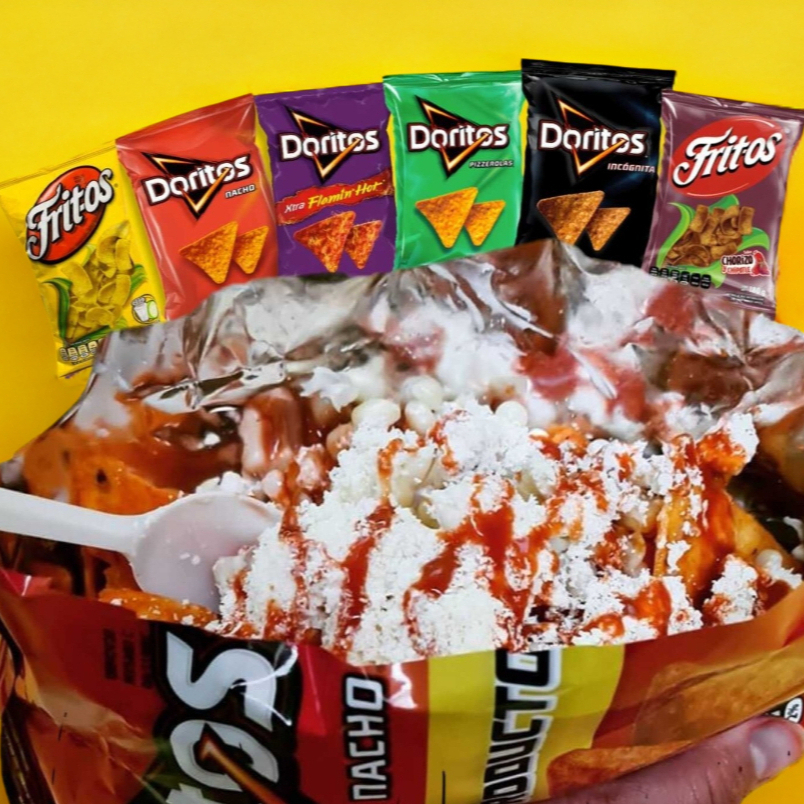 Doritos o Fritos a escoger con tus esquites favoritos y preparados como mas te gusten