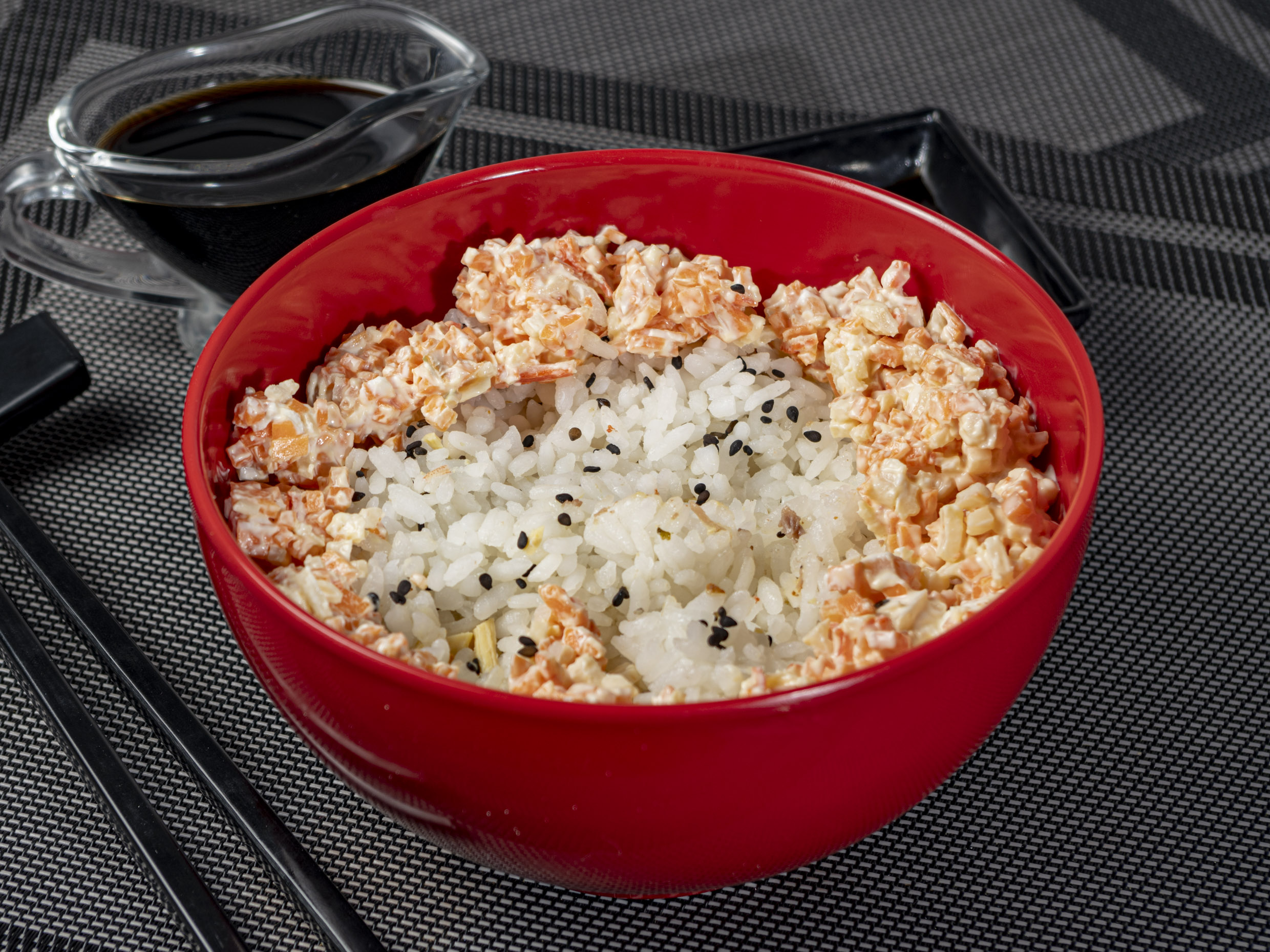 Bolas de arroz rellenas de queso crema y tu ingrediente favorito: sólo queso crema, pollo a la plancha, surimi, camarón, pulpo o arrachera; decoradas con alga nori, bañadas en salsa de anguila.