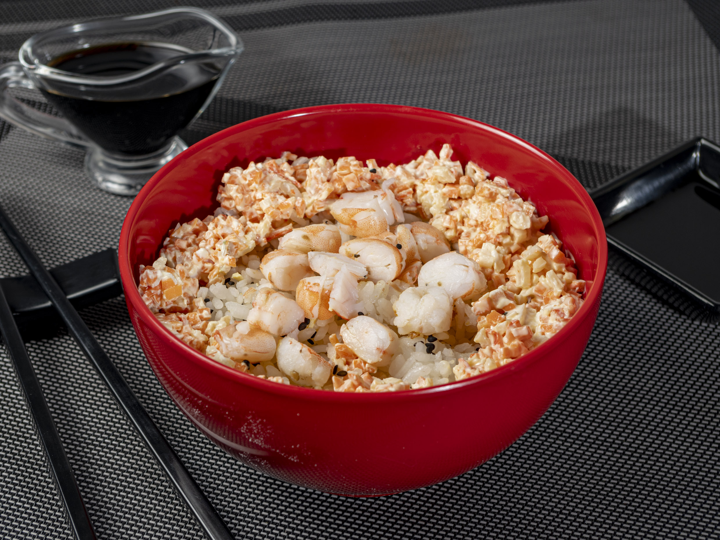 Arroz blanco al vapor con tus dos proteínas favoritas: pollo, cerdo, camarón, pulpo o arrachera, acompañado con salsa tampico.