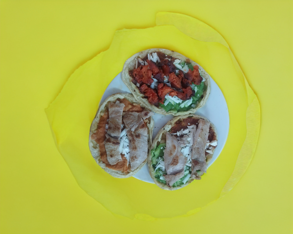 Exquisitas Gorditas de maiz hechas a mano, tres piezas, pueden ser de salsa roja y verde, Con proteína de bistec o longaniza