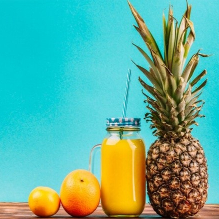 Delicioso jugo natural de 500 ml elaborado con naranja y piña
