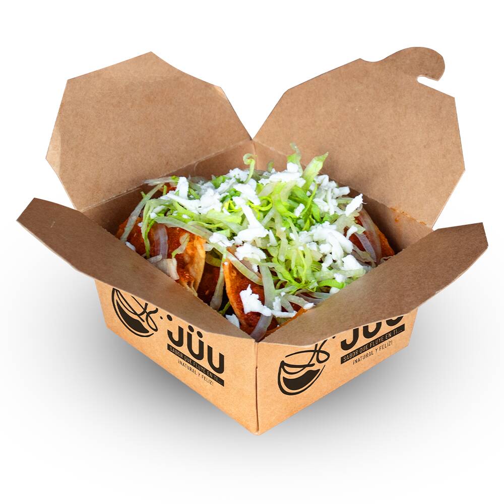Totopos, salsa, queso ranchero, cebolla, lechuga y crema.