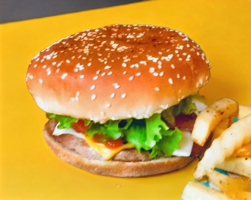 HAMBURGUESA SENCILLA CON PAPAS FRANCESA + POSTRE G