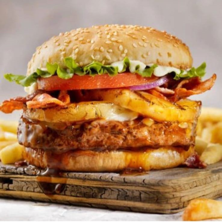 HAMBURGUESA HAWAIANA BBQ + POSTRE GRATIS