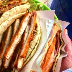 3 TORTILLAS DE COMAL,PECHUGA AZADA, PIERNA AL HORNO, CHORIZO, FRIJOLES REFRITOS, PAPAS FRANCESA, QUESO OAXACA, AGUACATE, RAJAS CON HUEVO