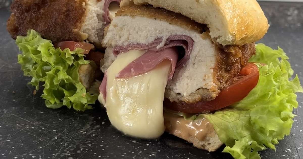 3 TORTILLAS DE COMAL, PECHUGA RELLENA 3 QUESOS JAMON , SALCHICHA , TOCINO, FRIJOLES REFRITOS, PAPAS FRANCESA, QUESO OAXACA, AGUACATE, RAJAS CON HUEVO