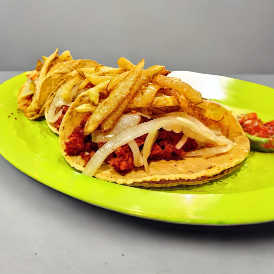 K TACO CHORIZO TOLUQUEÑO CON PAPAS + POSTRE SORPR