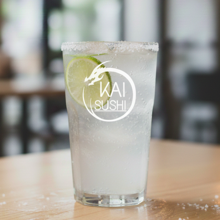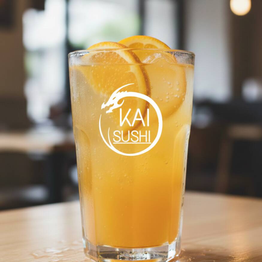 Bebida fresca de jugo de naranja con agua mineral o natural.